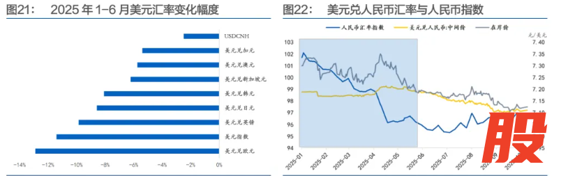 对于人民币,由于今年上半年人民币汇率相对非美货币表现偏弱,因此未来存在补涨需求;叠加国内经济维持在合理区间、自主化和科技转型叙事延续、中美利差走阔与市场预期转向,人民币兑美元汇率有望继续升值,预计明年上半年的阈值是7,下半年有希望“破7”。