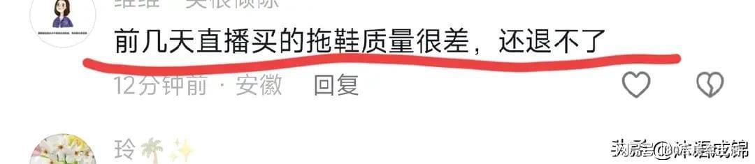 有人说直播买的拖鞋质量很差,还不能退。有人说售后一直在拖延,问题不解决。幼儿的人买的内衣掉颜色,售后没回复。